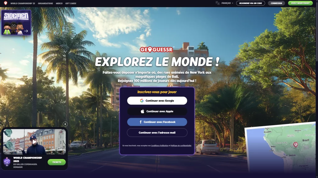 GeoGuessr est un jeu de géographie dans lequel vous êtes déposé quelque part dans le monde dans un panorama de rue, et votre mission est de trouver des indices qui vous permettront de deviner votre position sur la carte du monde.