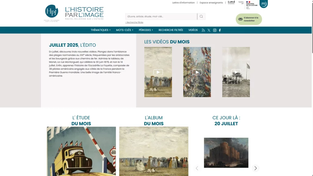 L’Histoire par l’image explore les événements de l’histoire de France et les évolutions majeures de la période 1643-1945. À travers des peintures, dessins, gravures, sculptures, photographies, affiches, documents d’archives, nos études proposent un éclairage sur les réalités sociales, économiques, politiques et culturelles d’une époque.